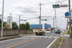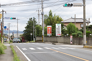国道50号桐生方面より間野谷町信号を左折